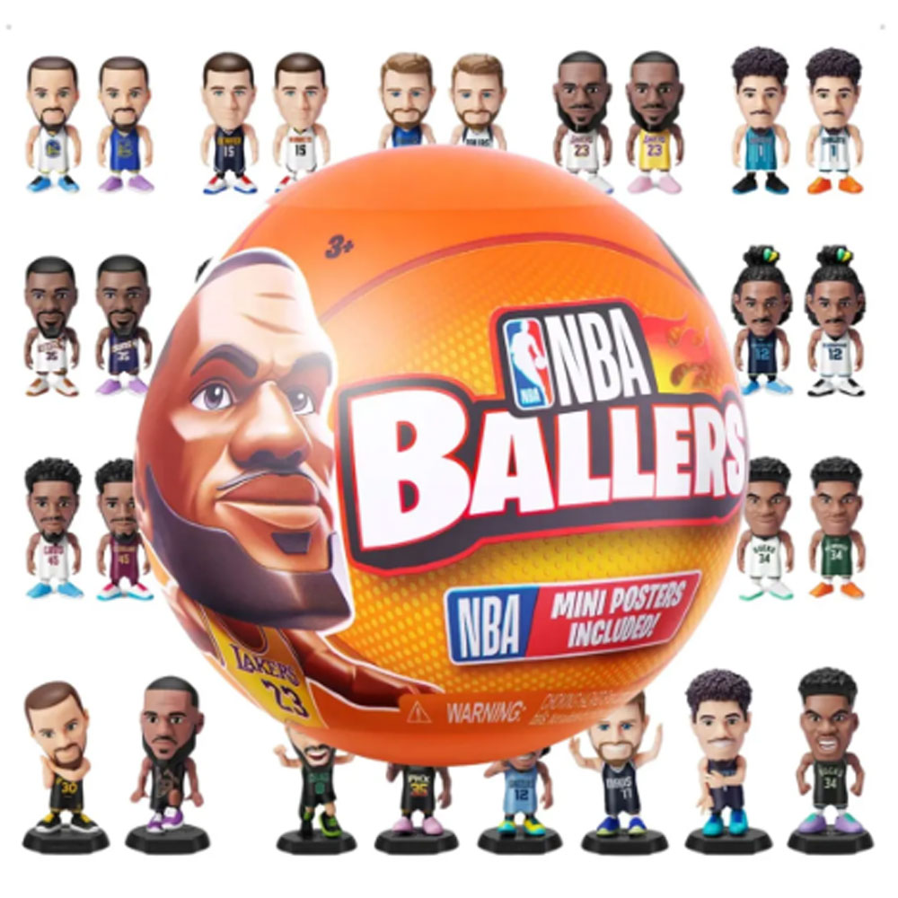 Mergulhe na emoção dos 5 Surprise NBA Ballers e traga o universo da NBA direto para suas mãos! Cada cápsula é uma surpresa repleta de magia, com um jogador de elite da NBA em poses icônicas de jogo. Desafie a sorte e encontre bonecos raros e ultra-raros de edição especial, incluindo astros como Luka Doncic, LaMelo Ball, Jayson Tatum, James Harden e Kevin Durant.