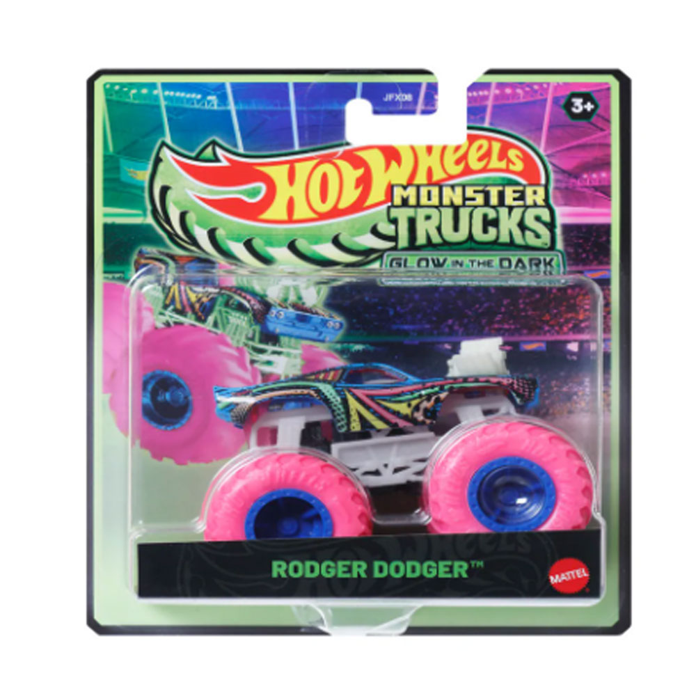 A ação fica ainda mais emocionante com os Monster Trucks da Hot Wheels que brilham no escuro! Cada caminhão de brinquedo Die-cast em escala 1:64 tem rodas grandes e designs incríveis que os fãs adoram, além de elementos que brilham no escuro para uma experiência visual emocionante! Os fãs e colecionadores de Monster Trucks vão querer todos eles!