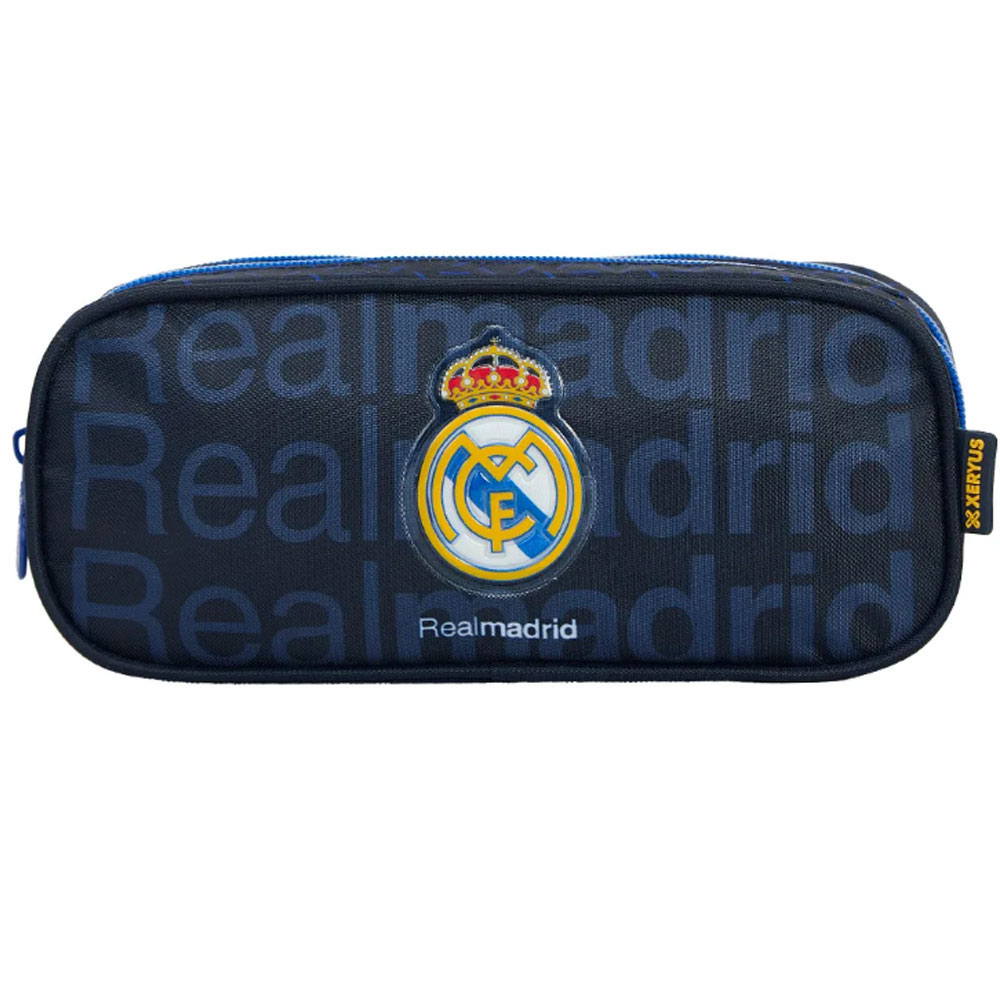 Mantenha o material escolar sempre em ordem com o estojo duplo do Real Madrid! Feito de poliéster durável, este estojo apresenta dois compartimentos espaçosos, ideais para acomodar todos os itens necessários para as atividades escolares. O escudo do time em PVC patch na frente garante um toque especial de orgulho Madridista. Perfeito para qualquer criança que quer demonstrar sua paixão pelo time madrilenho até nos detalhes!