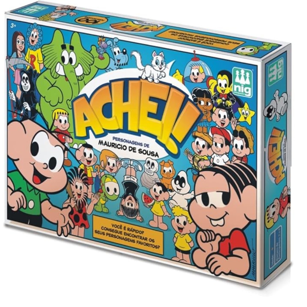 Jogo Achei - Turma da Mônica - 0758 - Nig Brinquedos Quem consegue achar os personagens favoritos de Maurício de Souza? Neste jogo a criança vai sortear uma das 100 cartinhas ilustradas e tentar encontrar o personagem o mais rápido possível. Horácio, Mônica, Jotalhão e toda a turminha estão “escondidos” em dois tabuleiros: um com nível fácil e outro difícil. Certificação Inmetro: CE-BRI/IQB 446 NM 300/2002. Indicado para crianças acima de 4 anos. Cor predominante: colorido. Material: cartão. Ref.: 0758. Conteúdo da embalagem: 1 tabuleiro e 100 cartinhas. Medidas do produto (C x A x L) 35 x 24 x 5 cm. Medidas da embalagem (C x A x L) 35 x 24 x 5 cm. Peso aproximado do produto: 340 gramas. Embalagem: caixa de papelão. Idade: a partir de 4 anos. Prazo de garantia: 03 meses de garantia legal. Observe atentamente a idade recomendada para o brinquedo. Pode conter partes pequenas que podem ser engolidas e perigosas. Fotos ilustrativas as cores e modelos podem sofrer alterações sem aviso prévio. Para a NIG Brinquedos é uma enorme satisfação oferecer ao seu cliente 60 anos de experiência, com muitas estórias de sucesso e comprometimento com as crianças. A NIG oferece diversão, entretenimento e atividades pedagógicas com produtos de qualidade nas linhas de brinquedos, madeira, licenças, jogos, quebra-cabeças e EVA.