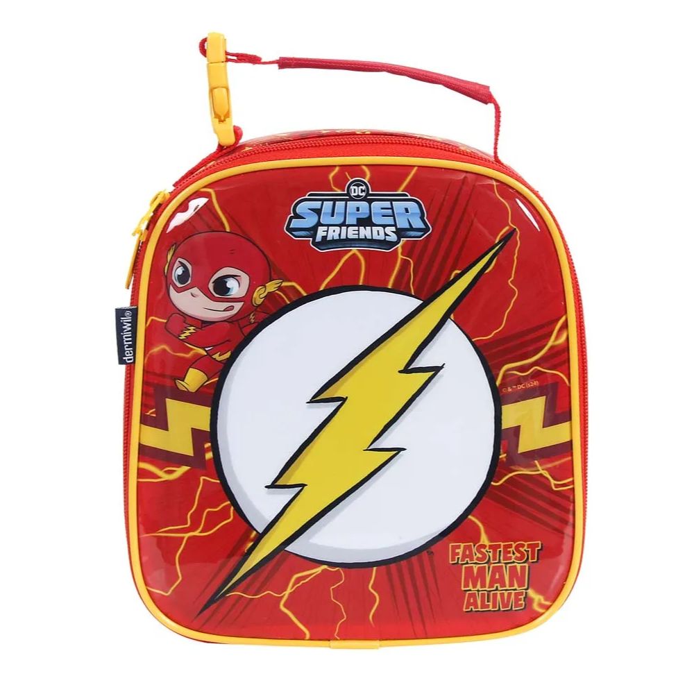 Lancheira Soft Infantil Menino The Flash DC Superfriends Suporte para facilitar o manuseio, estampas dos personagens, espaçoso, Produto versátil que pode ser levado à escola, passeios, shoppings, parques, entre outros. Características: Soft Material: 95% poliéster, 5% outras fibras. Dimensão: 22 cm x 20 cm x 8 cm Estampa: The Flash