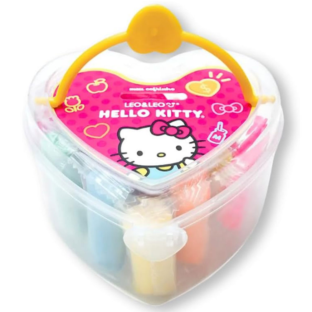 Fazer a criança brincar e já começar a aprender a economizar com as primeiras moedinhas. Essa é a grande ideia da Massinha de Modelar Coração Hello Kitty Leo&Leo. Em formato de coração, a maletinha é um kit que contém 175g de massinha divididas em 7 cores, separadas em 14 pacotinhos, 2 por cor, com mais 4 moldes exclusivos da Hello Kitty e ainda acompanha 1 ferramenta. Vazia, a maleta vira um cofrinho. Assim, depois de brincar e desenvolver a criatividade e habilidades manuais, a criança começa a juntar suas moedinhas e entender o significado e a importância do dinheiro. E graças ao seu formato de maletinha, a criançada pode carregar o produto para todos os lugares. Maletinha: 11,5 x 10,5 x 7cm