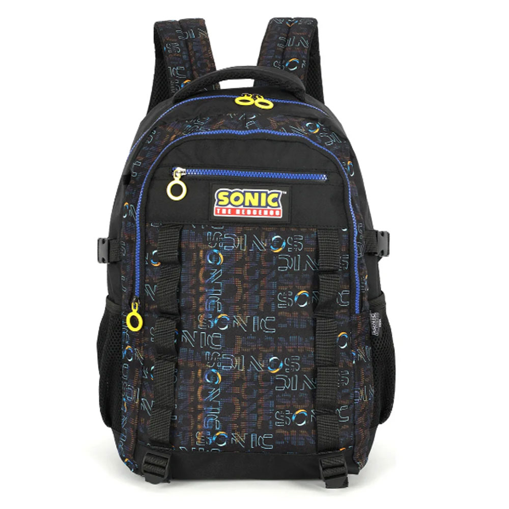 Mochila De Costas Juvenil Sonic The Hedgehog A mochila Sonic The Hedgehog é a sua melhor opção para quem procura algo moderno e prático. Sempre com muito estilo, vem com estampas diferentes e exclusivas. Confeccionada em tecido super resistente. * Bolsos laterais para garrafa * Alças reguláveis confortáveis * Alça de mão reforçada * Logo emborrachado Medidas: 46cm altura x 31cm largura x 15cm profundidade Capacidade aproximada: 21 Litros Material: Náilon / Poliéster Dicas e Cuidados: Proteja os objetos pontiagudos ou cortantes evitando o contato direto com o produto. Guarde o produto em um local seco, fresco e arejado, para evitar a proliferação de fungos que podem danificar o produto. Para limpeza, use apenas água morna e sabão neutro; nas partes metálicas, utilize somente uma flanela seca. Nunca aplique produtos abrasivos, solventes ou quaisquer agentes químicos. Para secagem, utilize apenas pano seco. Não exponha ao sol e altas temperaturas por um período prolongado. Apare sempre os fios soltos do tecido, para que eles não se prendam no zíper.