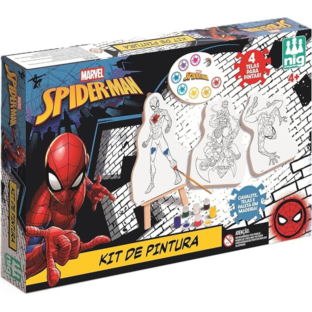 Este kit é perfeito para estimular o lado artístico das crianças, permitindo que elas pintem seus próprios quadros do Homem-Aranha . O conjunto é completo e traz uma estrutura profissional em miniatura, proporcionando uma experiência real de pintura. Destaques do Kit: Experiência Completa: Acompanha um cavalete robusto, telas em madeira (MDF), pincel e tintas guache. Desenvolvimento Criativo: Auxilia na coordenação motora fina, no reconhecimento de cores e na expressão artística. Tema Favorito: Ilustrações dinâmicas do Peter Parker em ação, que motivam a criança a finalizar suas obras. Qualidade Marvel: Produto licenciado, garantindo fidelidade aos traços do personagem e segurança nos materiais. Conteúdo da Embalagem: 01 Cavalete em madeira (aproximadamente 45cm) 04 Telas em madeira com desenhos do Spider-Man 01 Pincel 06 Potes de tinta guache colorida 01 Paleta para misturar as cores Especificações Técnicas: Marca: Nig Brinquedos Licenciamento: Marvel Linha: MAD - Kit Pintura Material: Madeira (MDF), plástico, tintas e cerdas sintéticas Idade Recomendada: A partir de 4 anos