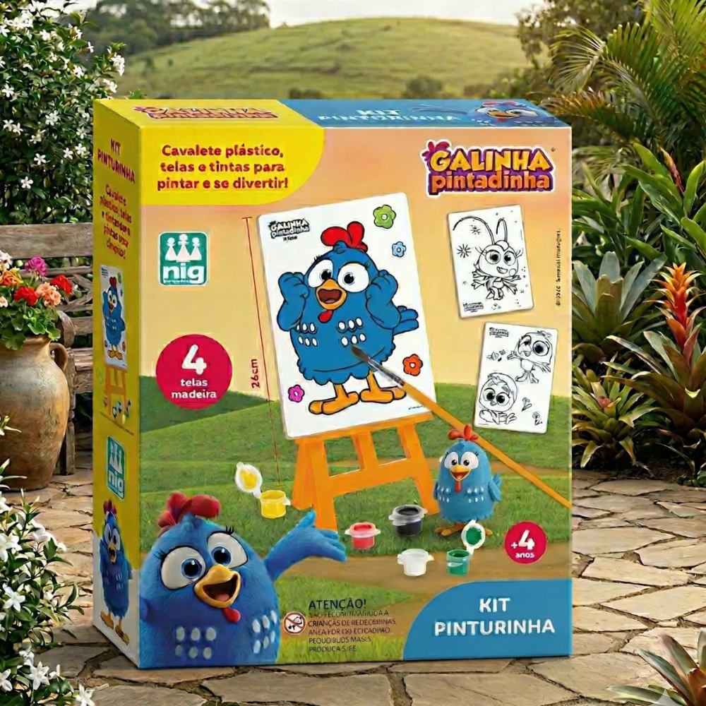 Este kit de pintura da Galinha Pintadinha é o presente infantil ideal para estimular a criatividade e a coordenação motora dos pequenos. Fabricado em madeira resistente, o conjunto oferece uma experiência lúdica e educativa, permitindo que as crianças deem vida aos seus personagens favoritos com cores vibrantes. O kit é completo e pronto para o uso, acompanhando cavalete, telas ilustradas, tintas atóxicas e pincel. É uma excelente opção para momentos de lazer longe das telas, promovendo o desenvolvimento artístico de forma segura e divertida. Destaques do Produto: Material de Alta Qualidade: Peças em madeira reflorestada, duráveis e seguras. Educativo: Auxilia no reconhecimento de cores e no controle do movimento. Temático: Estampas exclusivas da Galinha Pintadinha que encantam as crianças. Praticidade: Tudo o que a criança precisa para começar a pintar imediatamente.