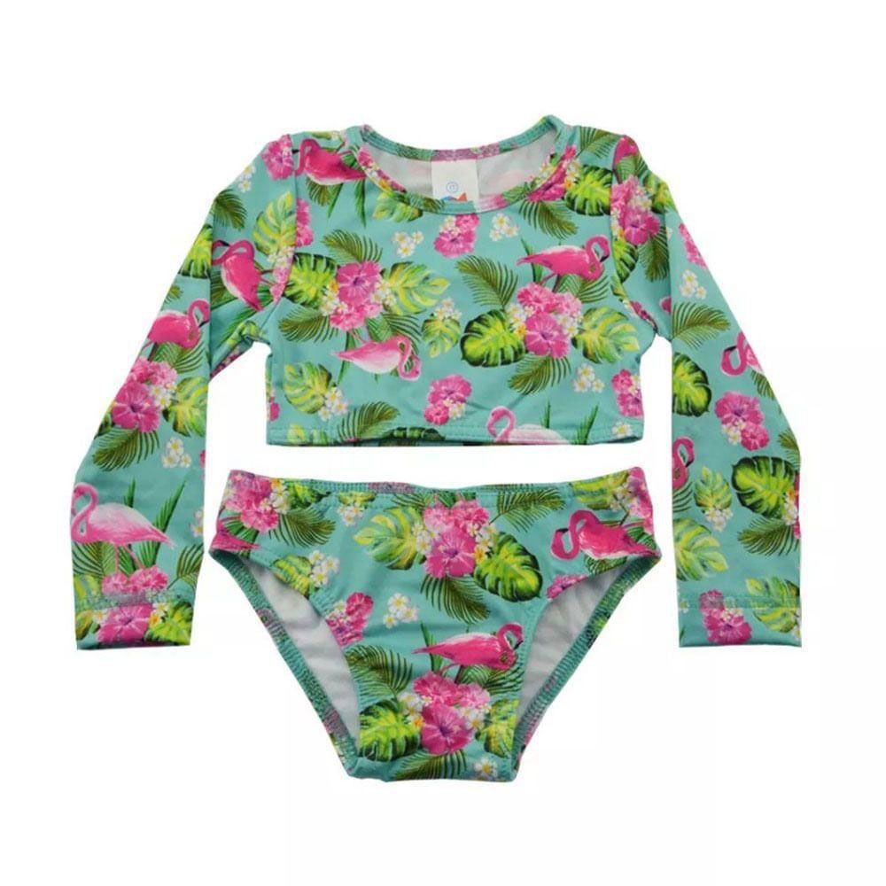 Os pequenos vão ficar lindos com o Biquíni Flamingos Verde - Tip Top