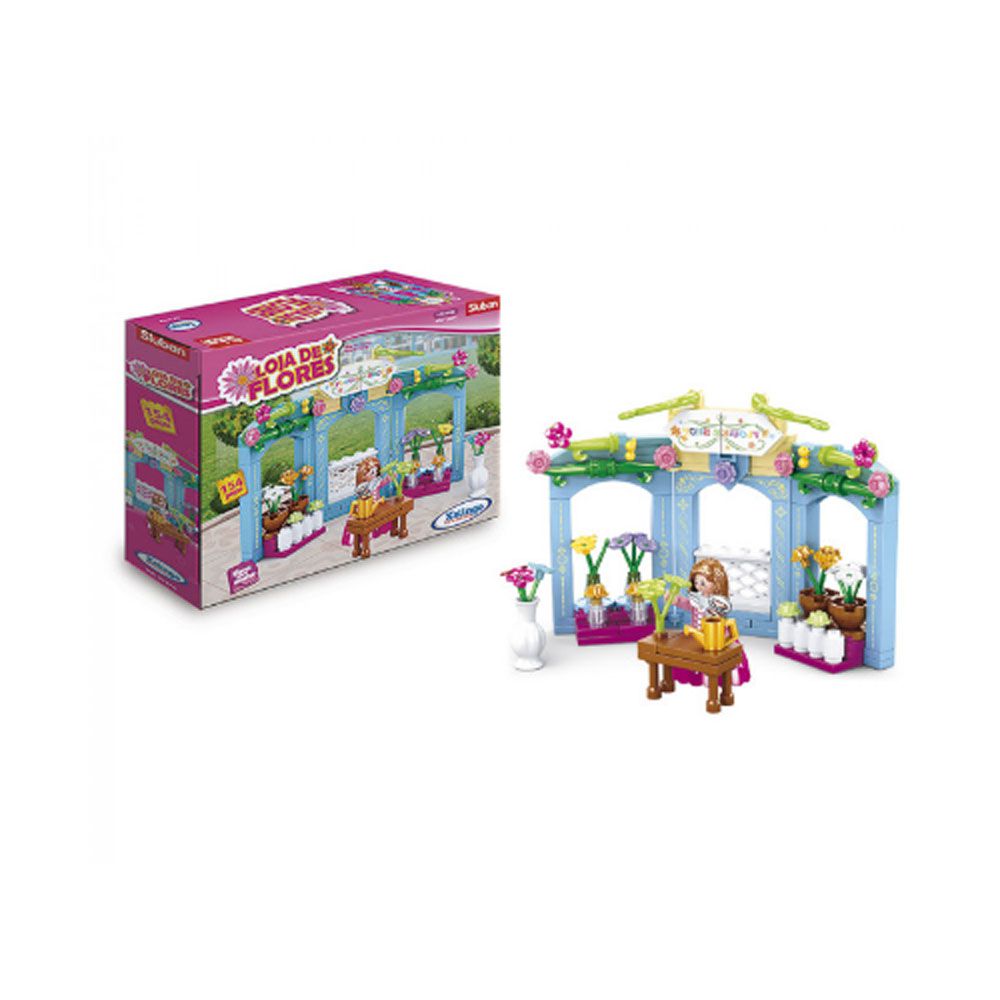 • A brincadeira ficou mais divertida com os blocos de encaixe Loja de Flores da Xalingo Brinquedos.