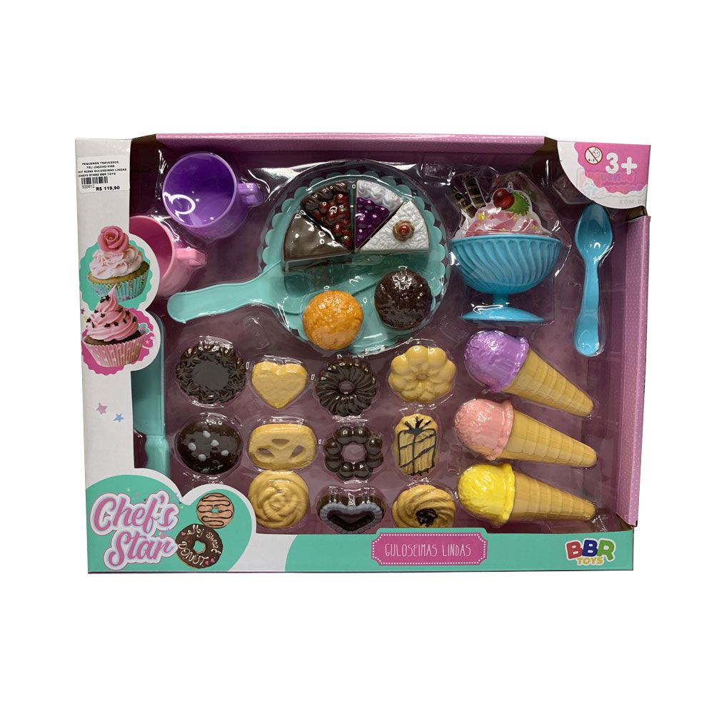 Agora as crianças podem ter sua própria confeitaria! São diversos doces e guloseimas deliciosas para a brincadeira ficar mais divertida.