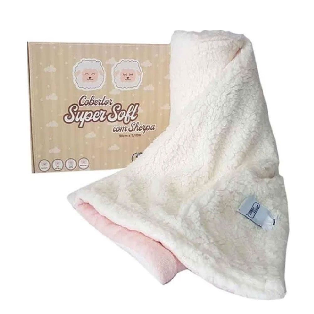 Marca: Jolitex 98168; Composição: 100% Poliéster; Cor predominante: Rosa/Creme; Conteúdo da embalagem e dimensão: 01 Cobertor Bebê 90cmX1,10m; Imagens ilustrativa