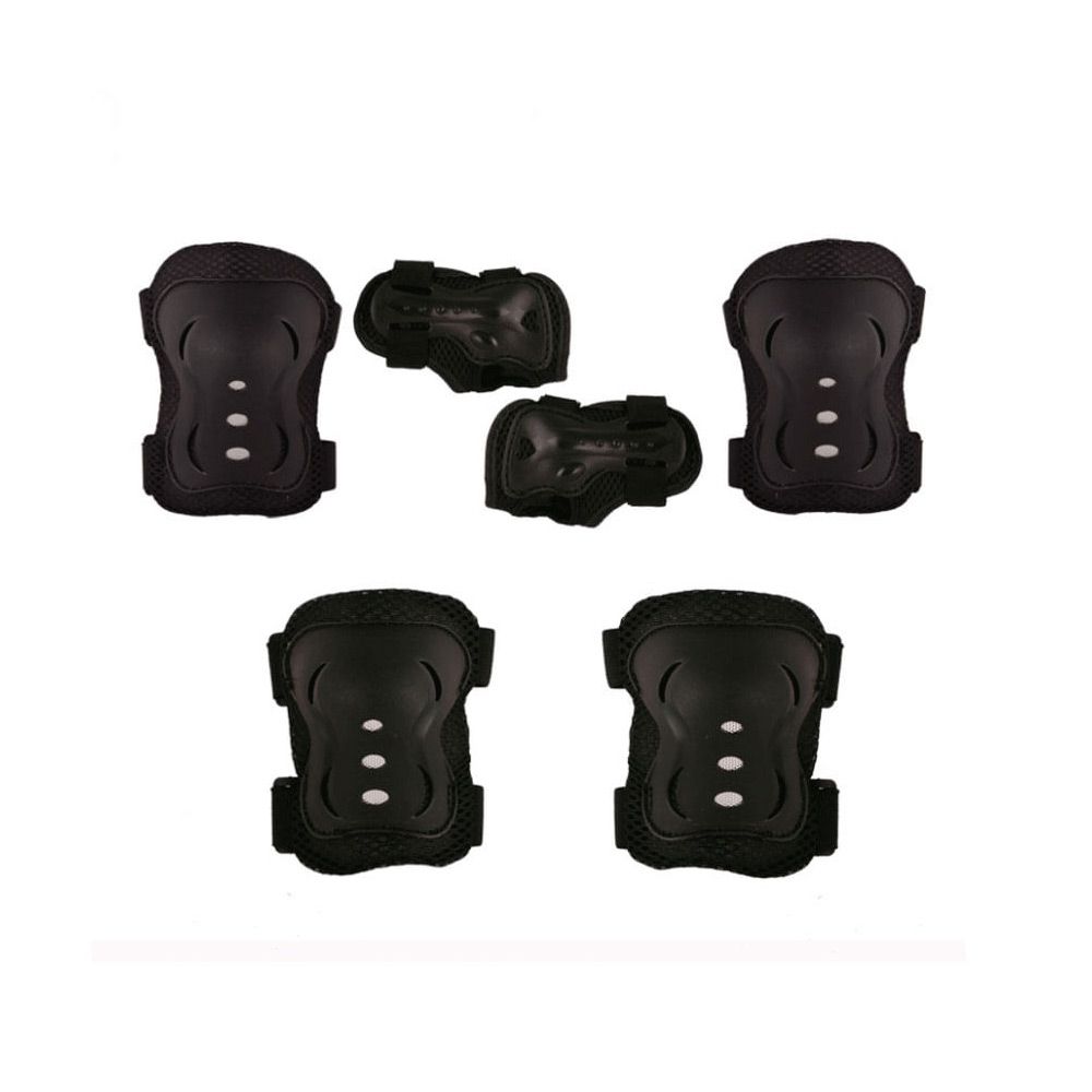 O kit contém 2 joelheiras, 2 cotoveleiras e 2 protetores de pulso.