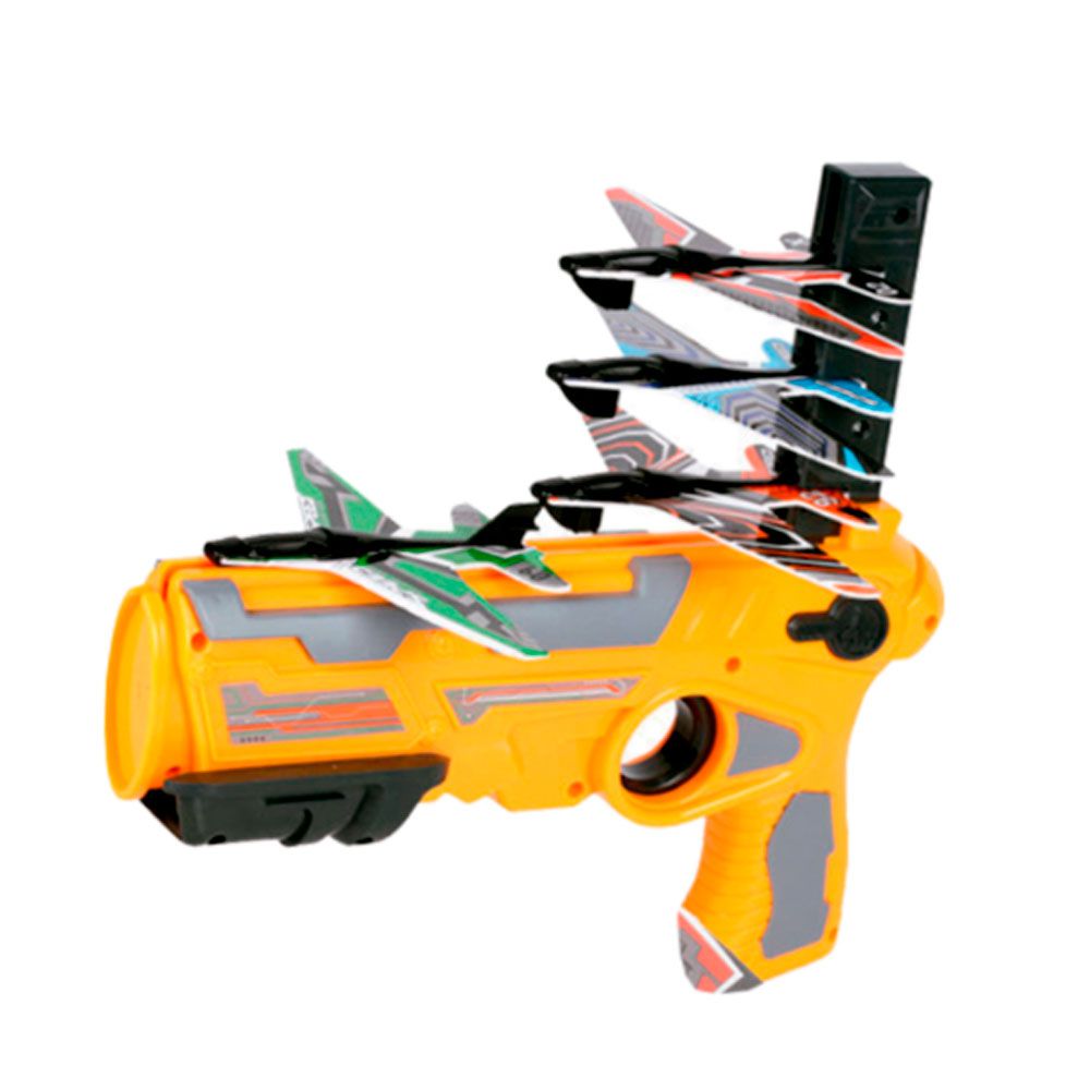 É uma pistola que dispara aviões apenas carregando e apertando o gatilho!
