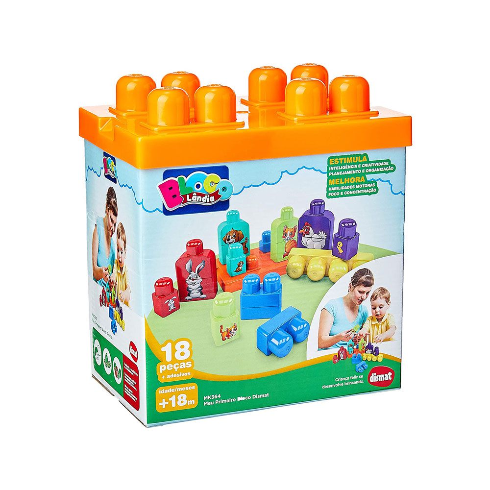 Meu Prmeiro Bloco da Dismat, é fabricada em plástico de alta qualidade para garantir durabilidade e resistência durante seu uso. Ela conta com 18 peças grandes e coloridas para segurança de seu bebê.