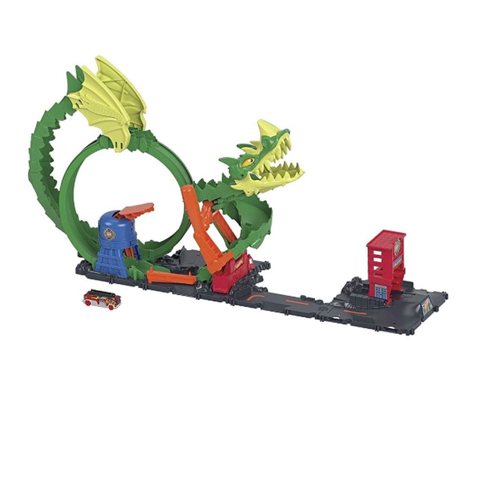 Salve a Hot Wheels City de Dante, o dragão feroz que come carros e derruba construções! As crianças lançam os carros Hot Wheels na fera para derrubá-la e resgatar a cidade!