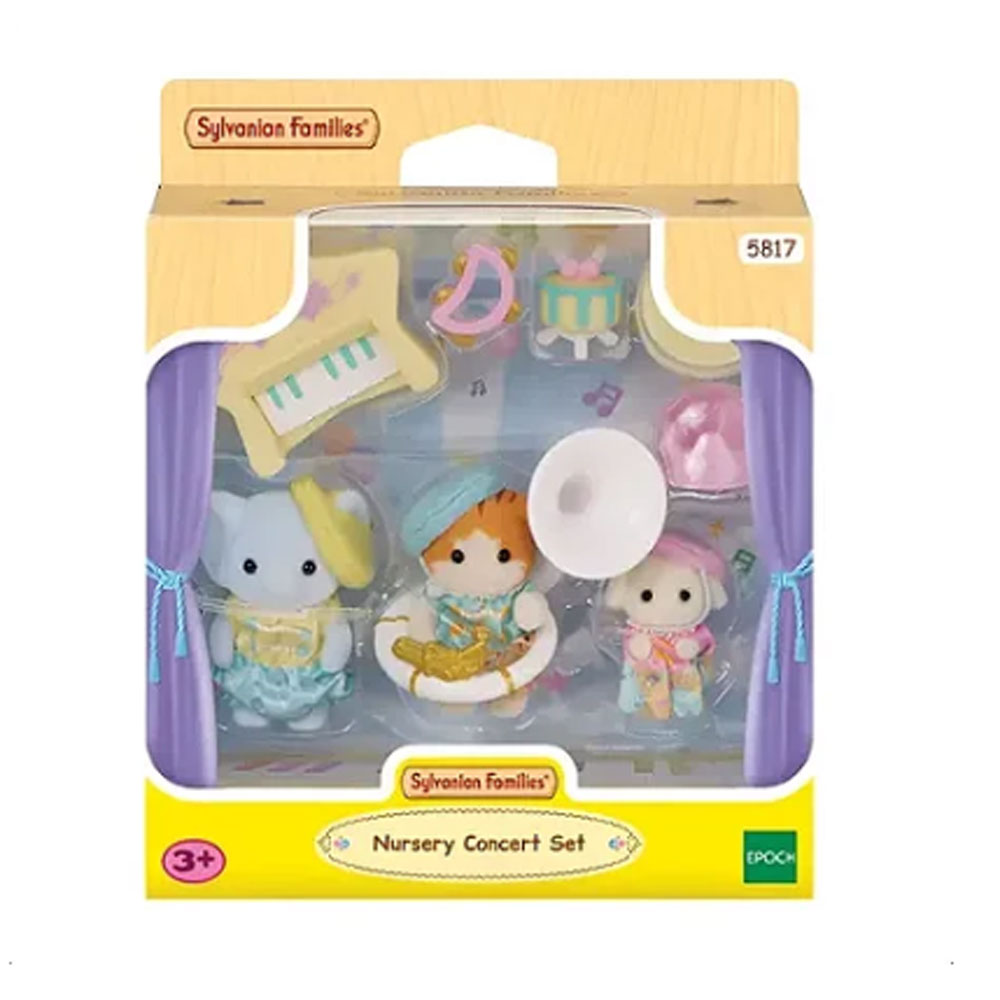 O Conjunto Concerto do Jardim da Infância traz muita música e fofura para o universo Sylvanian! Inclui três bebês vestidos com fantasias de banda e vários instrumentos como tambor, pandeiro, sousafone e piano em formato de estrela. Ideal para desenvolver a criatividade musical das crianças, esse set é perfeito para enriquecer o cenário da creche Sylvanian.
