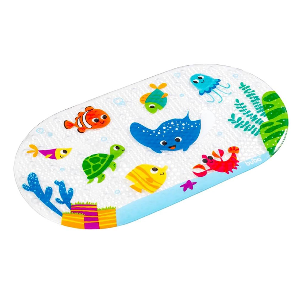 O tapete é perfeito para prevenir que a criança escorregue. Possui múltiplas ventosas.
