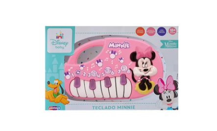 O Teclado do Minnie Disney Baby da Yestoys é um brinquedo musical divertido que estimula o tato, a audição e a cognição. Possui a Minnie em 3D e vem com teclas que se alternam entre notas musicais e sons dos animais: pato, ovelha, gato, e galinha - apertando o botão inverter. Indicado para crianças acima de 18 meses. Imagem ilustrativa.